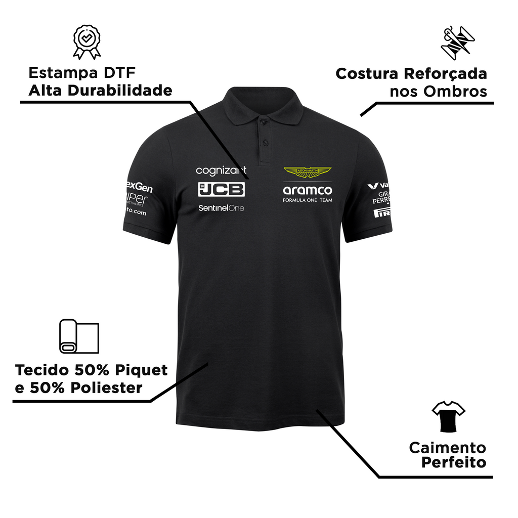 Camisa Polo Lance Stroll Aston Martin 2024 Preta