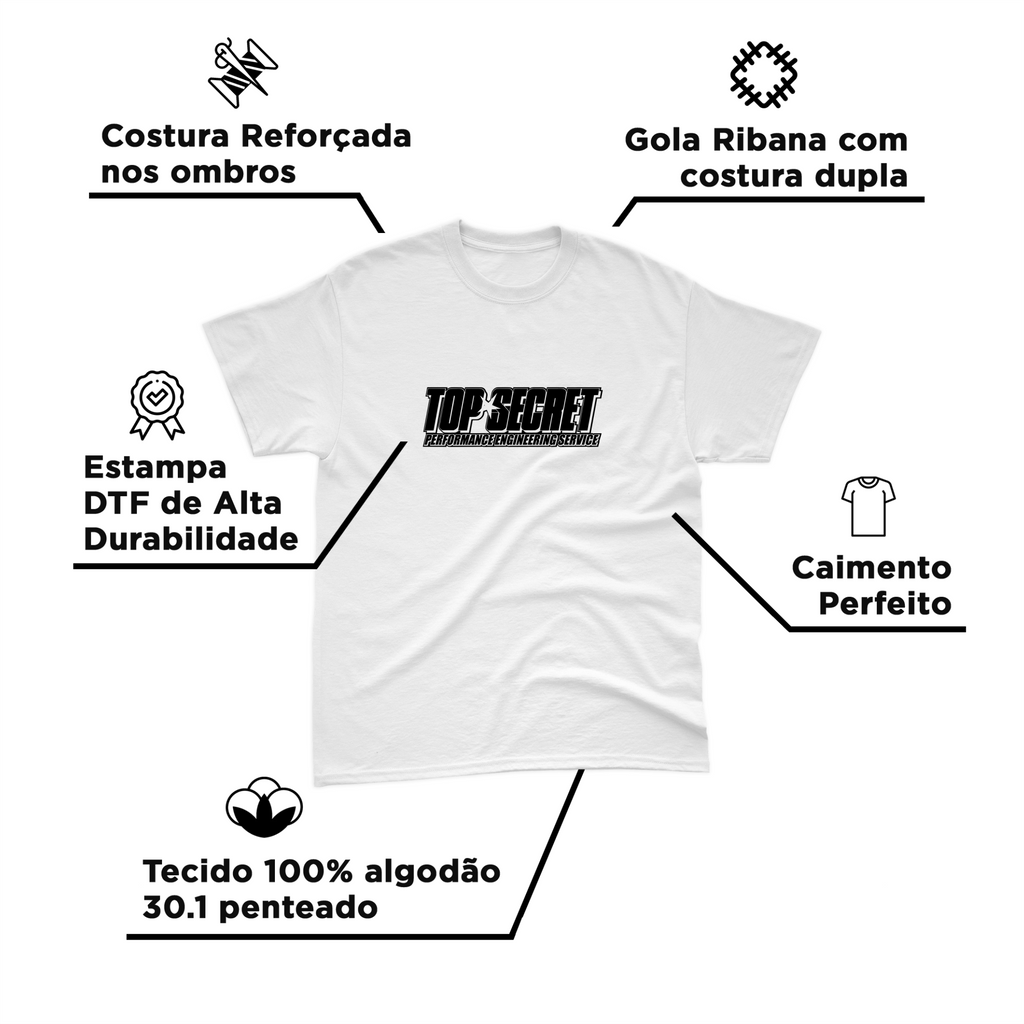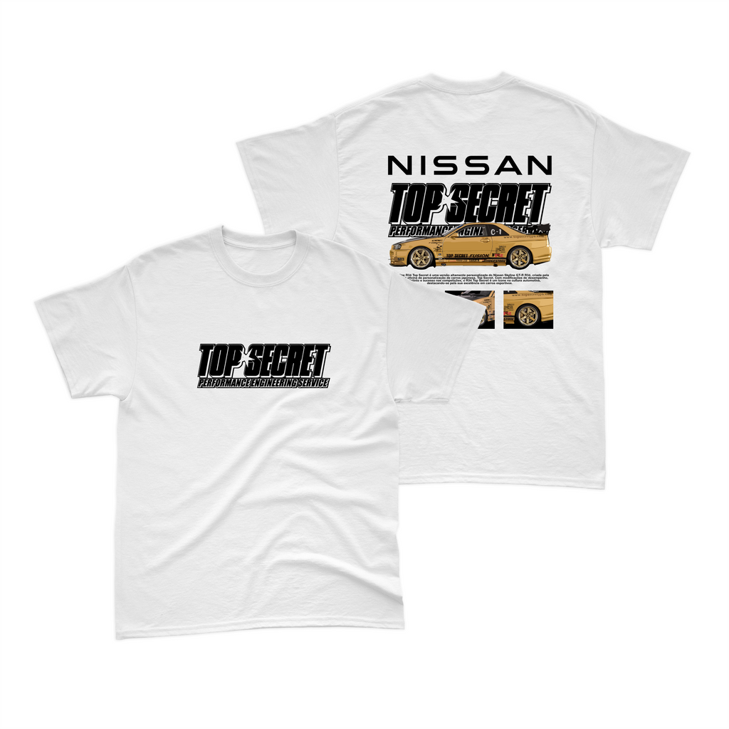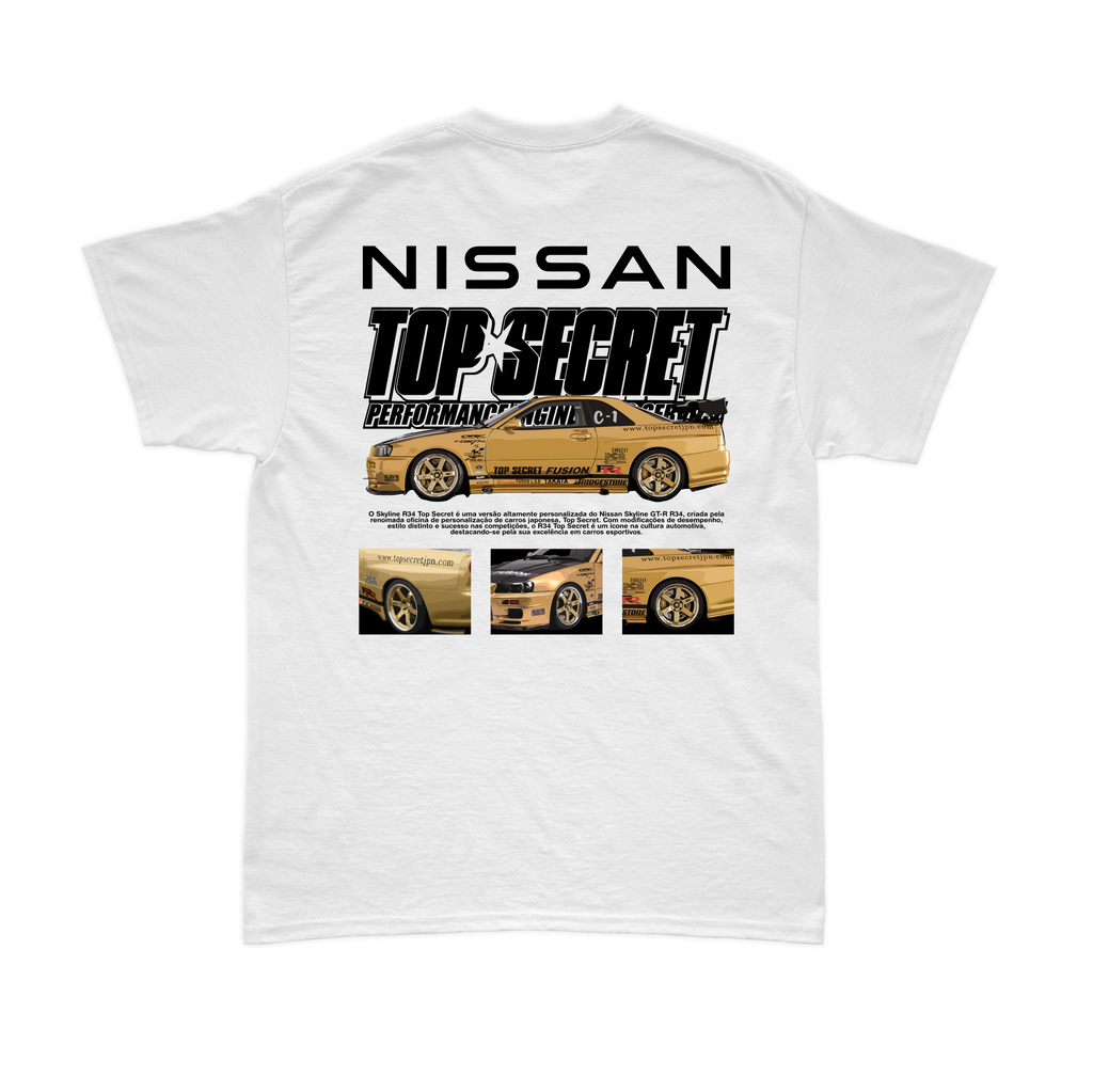 Camiseta Nissan Skyline GT-R R34 TOP SECRET V1 Branca