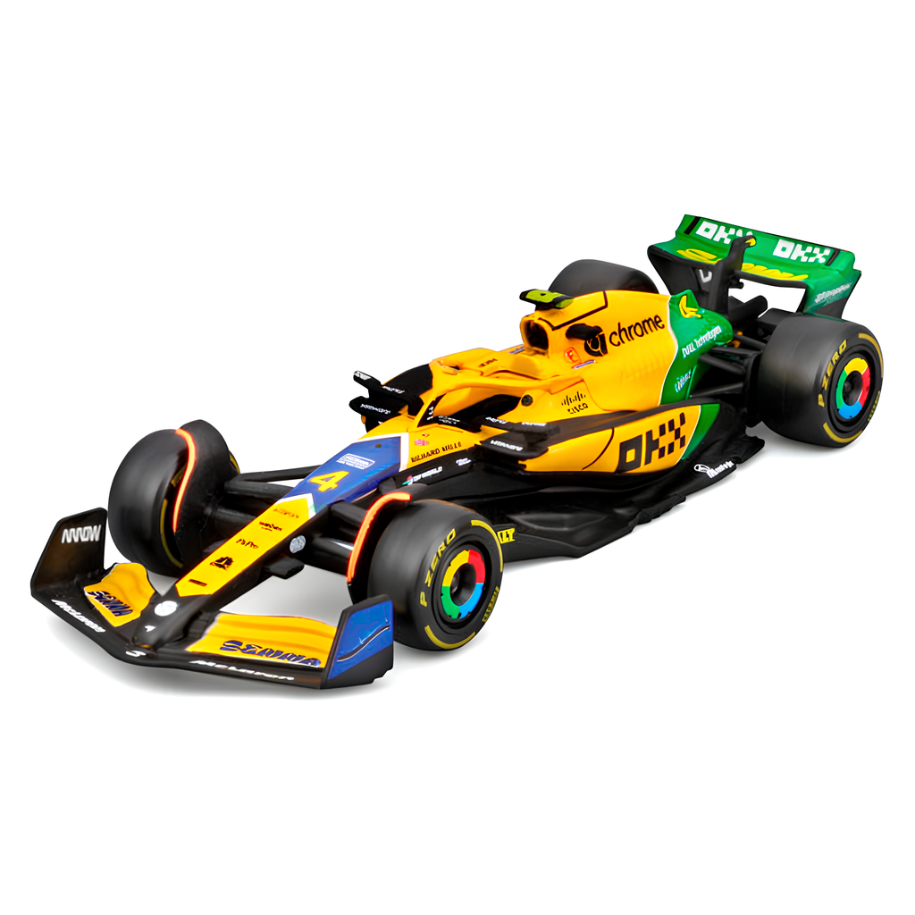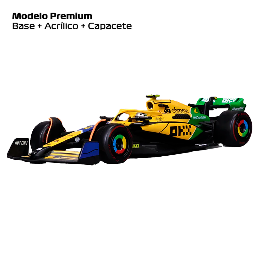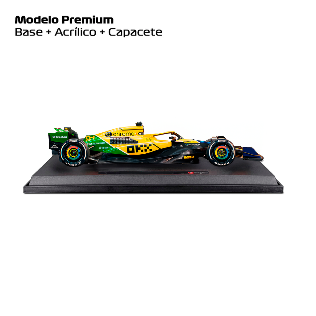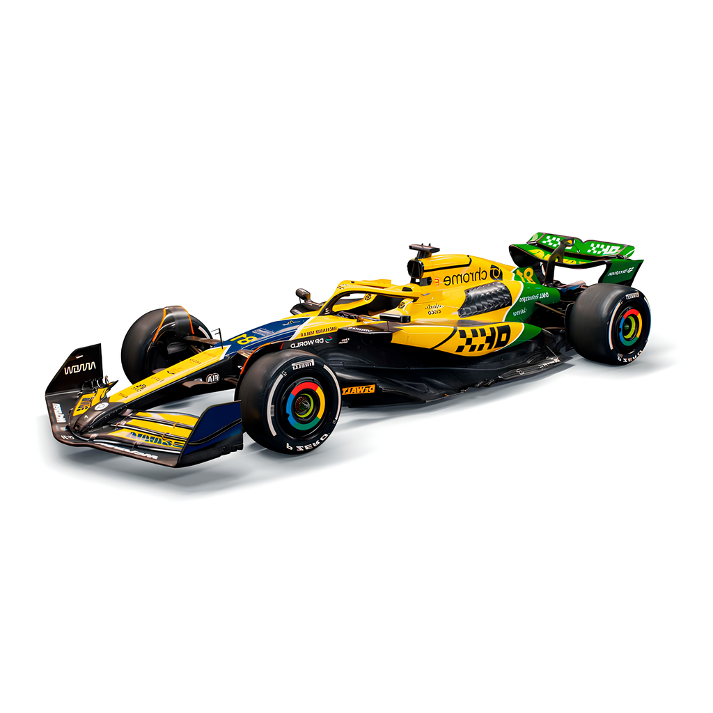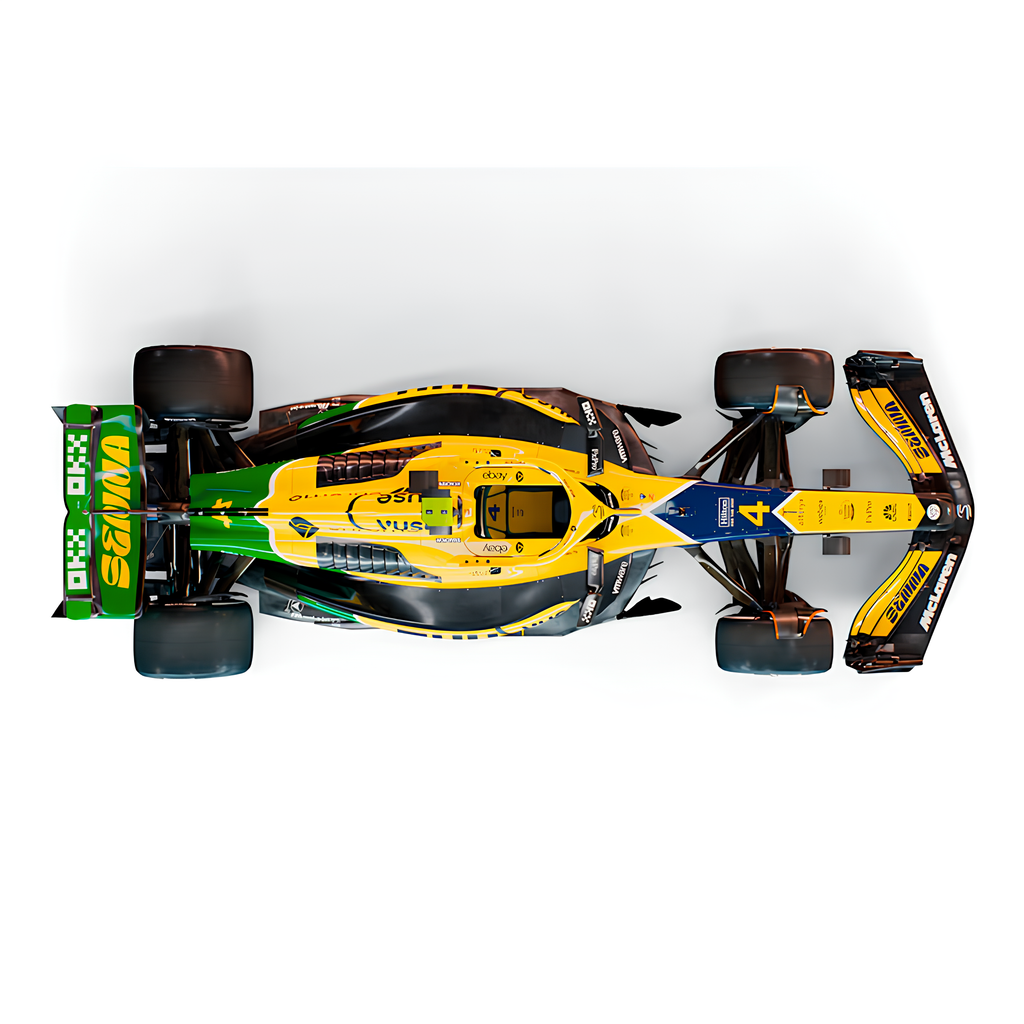 - Detalhes Incríveis: Cada aspecto do MCL38 foi replicado com fidelidade, das cores que remetem ao capacete de Ayrton Senna/Brasil até os elementos aerodinâmicos.