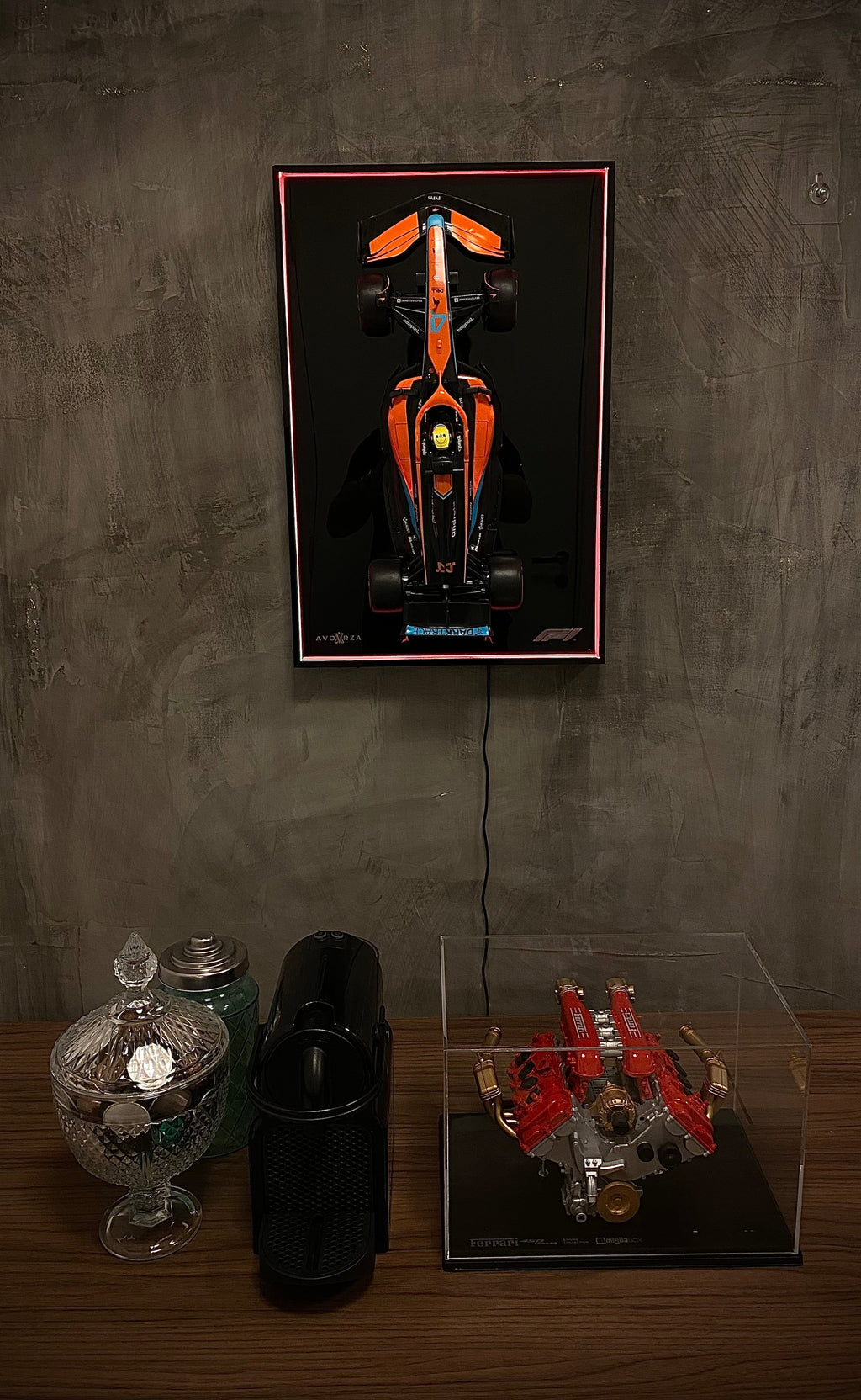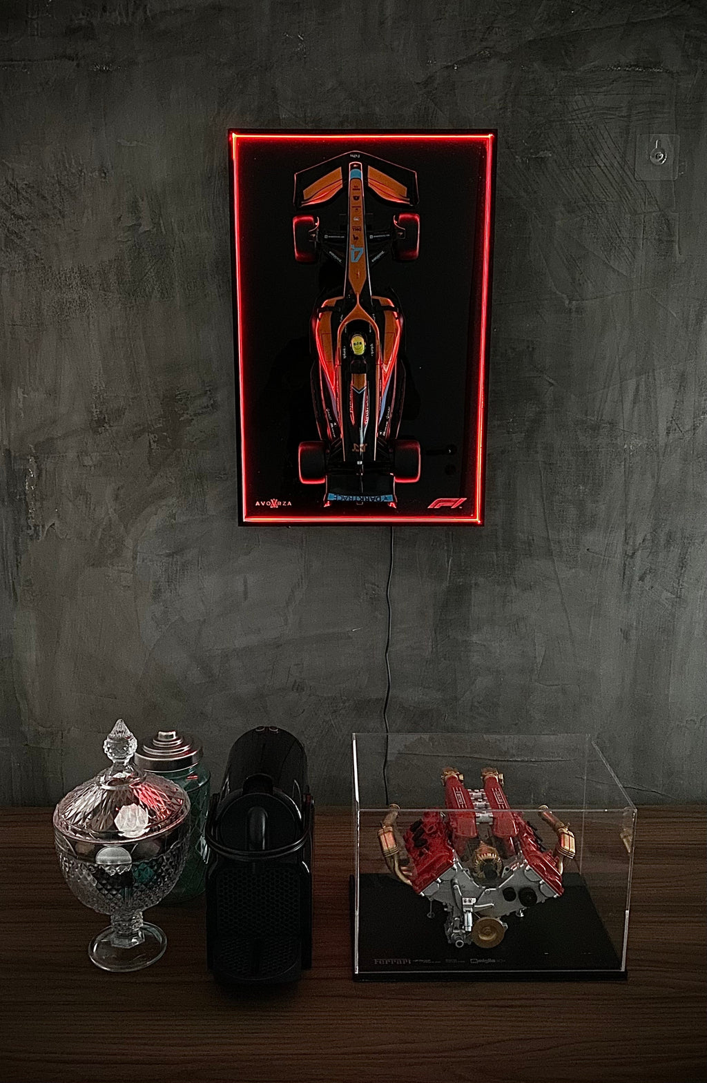 Quadro Light F1 Com Led Multicores + Miniatura F1 Escala 1/10