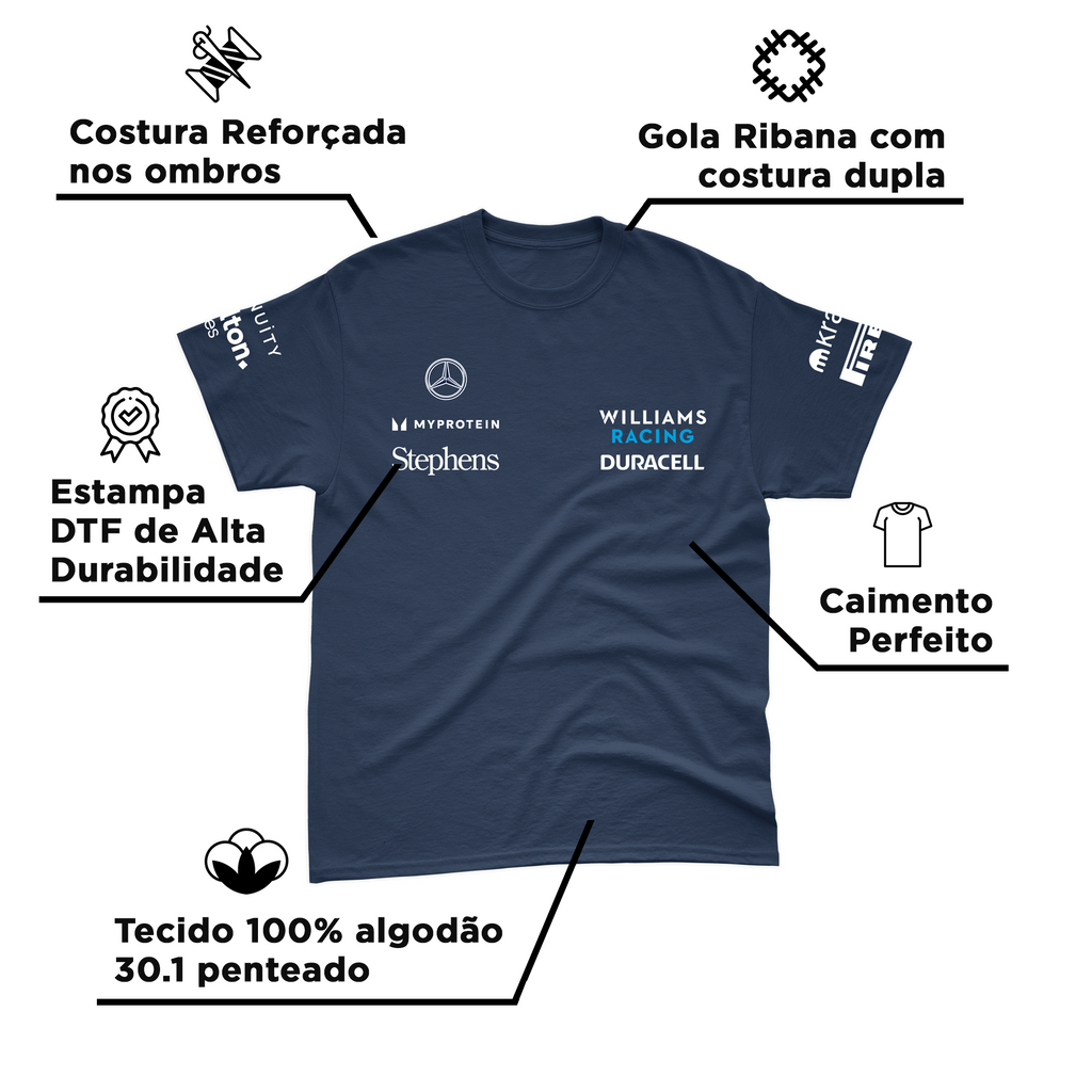 Camiseta Algodão Alex Albon Williams 2024 Azul Marinho