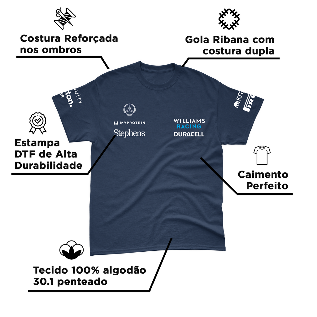 Camiseta Algodão Carlos Sainz Williams Racing Azul Marinho