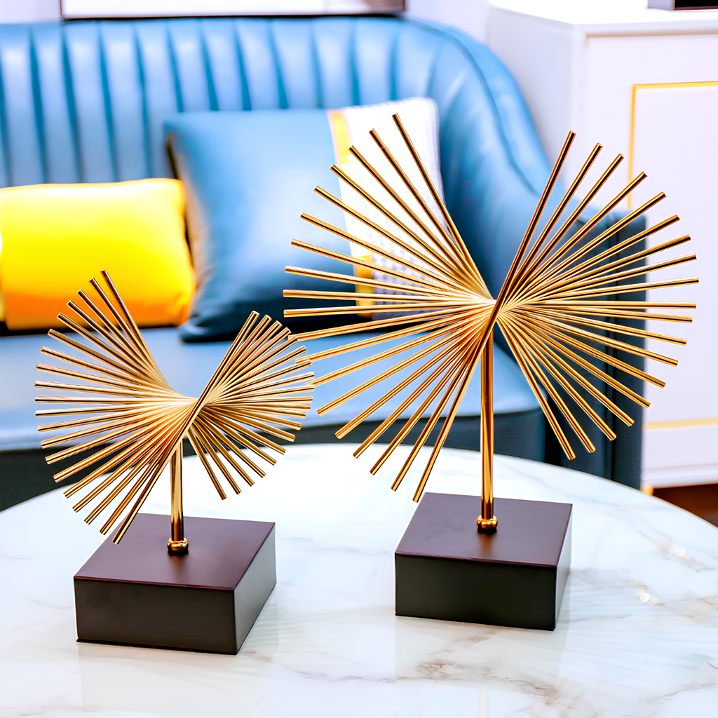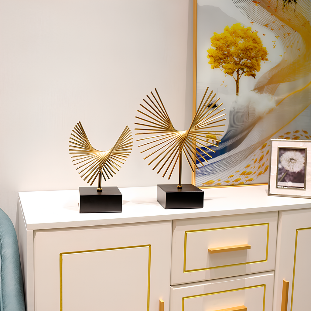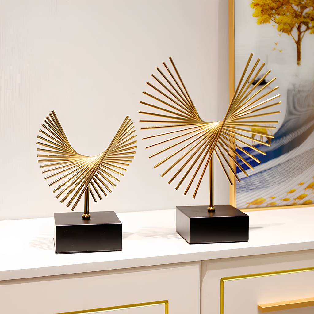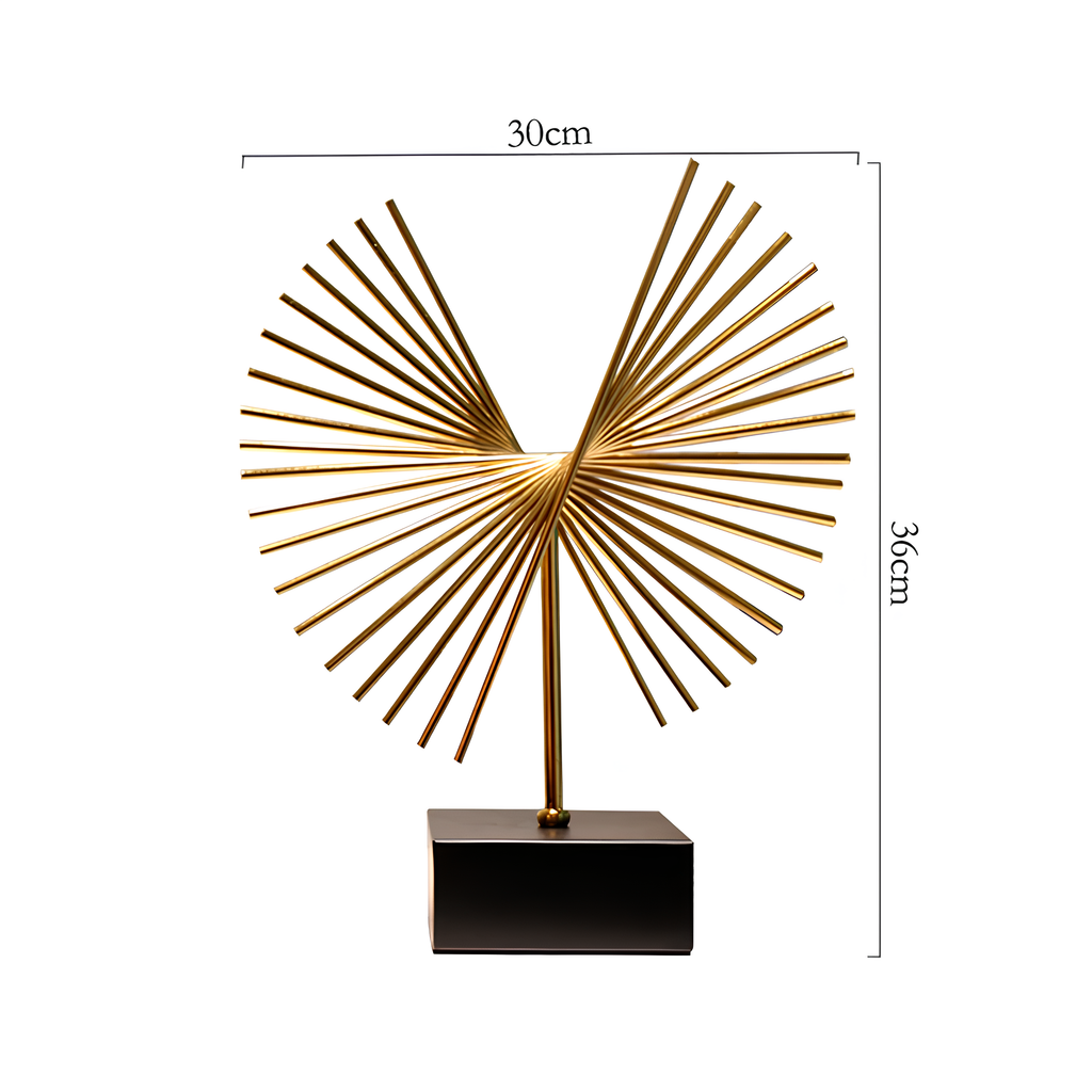 Com linhas geométricas perfeitamente balanceadas, esta escultura une harmonia e simplicidade refinada. Feita de metal nobre, sua tonalidade dourada acrescenta um toque de luxo e sofisticação a qualquer espaço.
