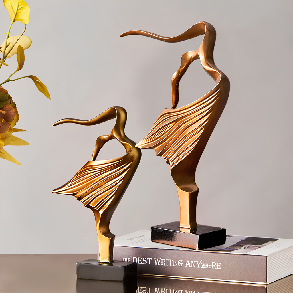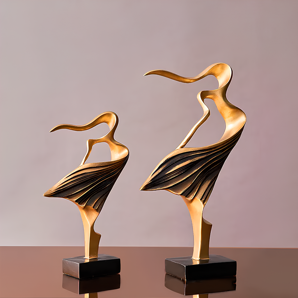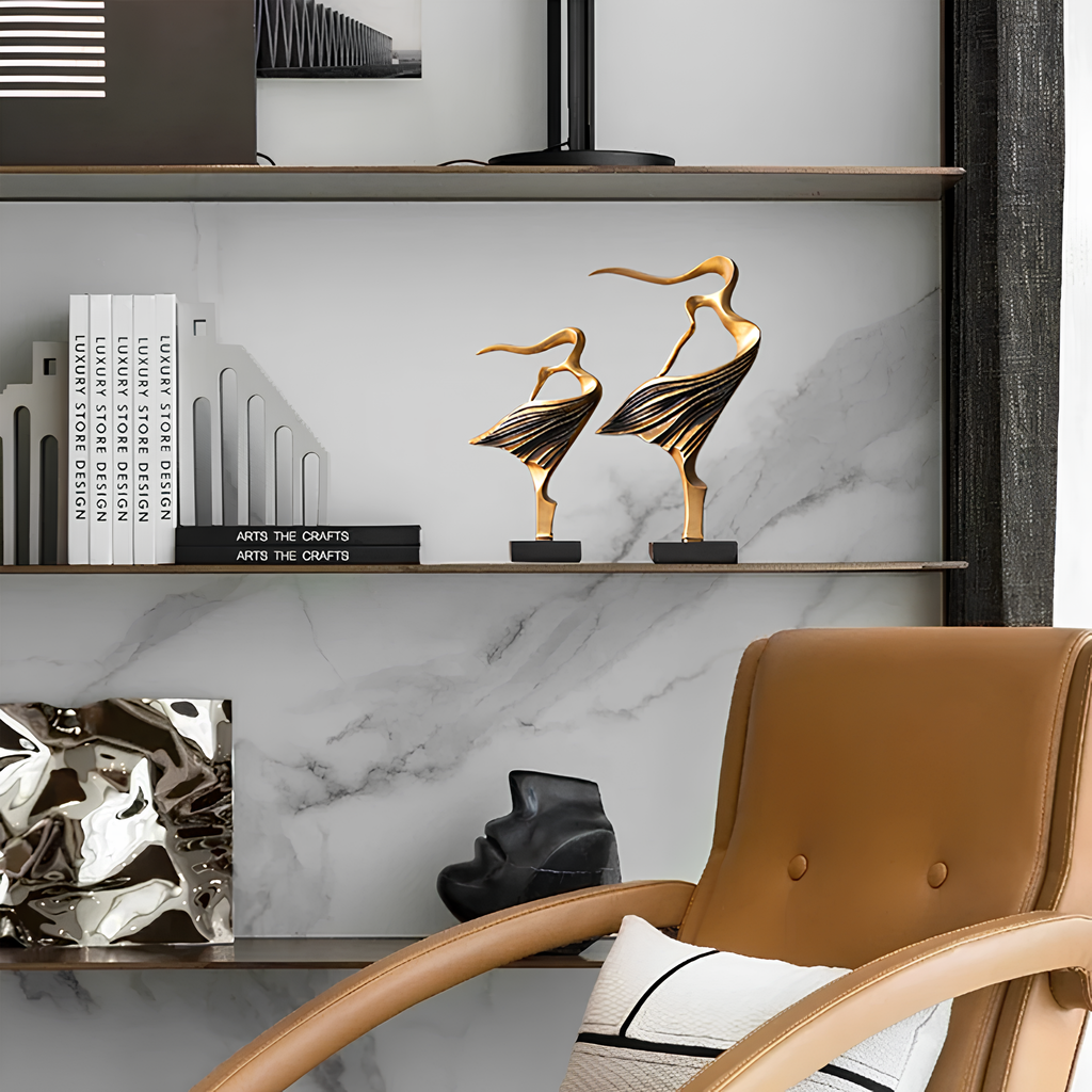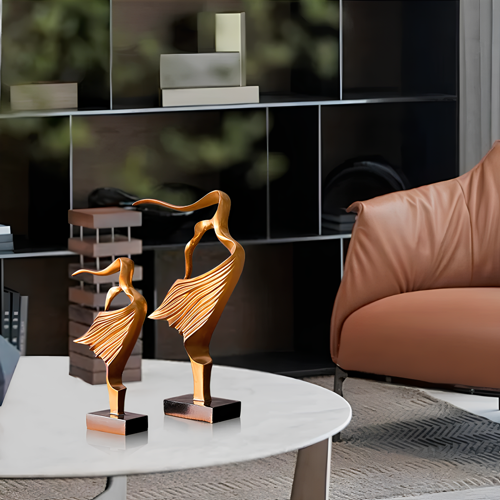 A Estátua Abstrata Ave em Resina Dourada é uma peça de arte moderna que combina elegância e abstração. Feita de resina dourada, sua forma evoca uma ave estilizada, com linhas fluidas e contornos suaves.