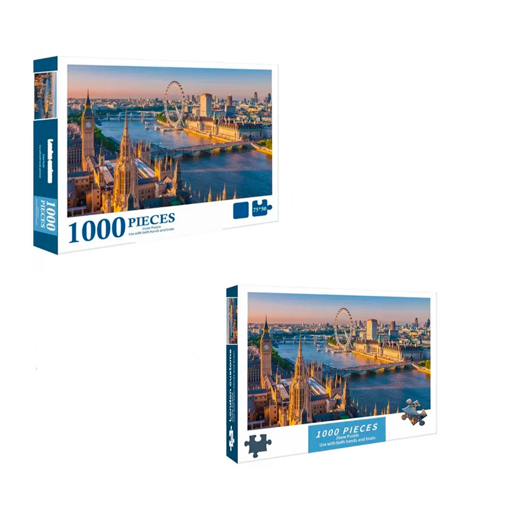 Descubra a beleza de Londres com o quebra-cabeça paisagem de 1000 peças! Conecte cada peça para formar uma visão deslumbrante da cidade, desafiando suas habilidades enquanto se encanta com os pontos turísticos icônicos. Ideal para relaxar e se divertir sozinho ou com amigos e família. Desperte sua paixão por Londres com este quebra-cabeça!